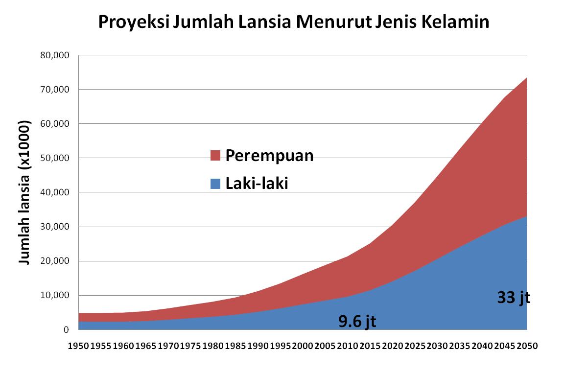 14. Proyeksi pertumbuhan penduduk Indonesia di masa depan akan didominasi penduduk yang lebih panjang harapan hidupnya dan didominasi wanita.